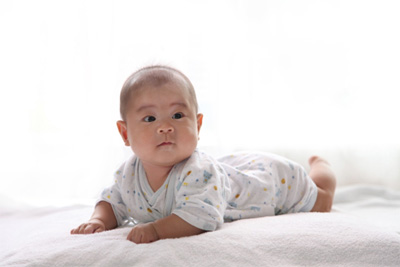 生後3ヶ月くらいの赤ちゃんは、首がしっかりしてきて、うつ伏せにすると腕で支えて頭を少し持ち上げられるようになります。頑張って体を反らせようとするのではなく、腹部をリラックスさせて床に下げるようにします。赤ちゃんが、自然に行なっていることは我々が忘れてしまったことです。赤ちゃんから、学びとりましょう。