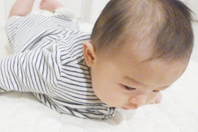コブラのポーズの準備運動になり、背筋を使うので、背中が鍛えられます。生後2ヶ月くらいの赤ちゃんがうつ伏せにすると頭を持ち上げようとする動きです。